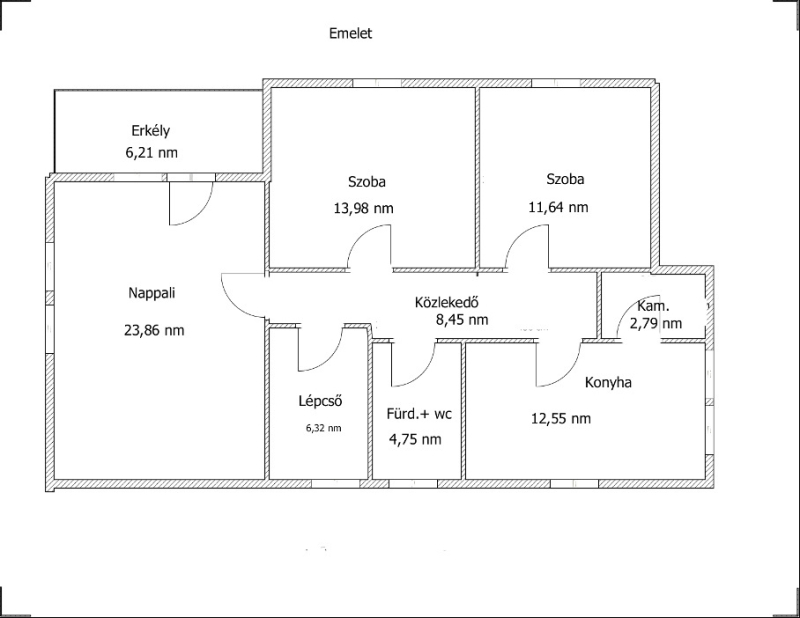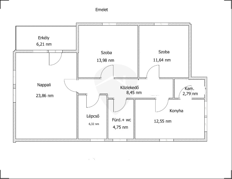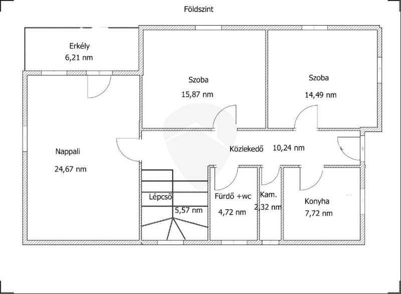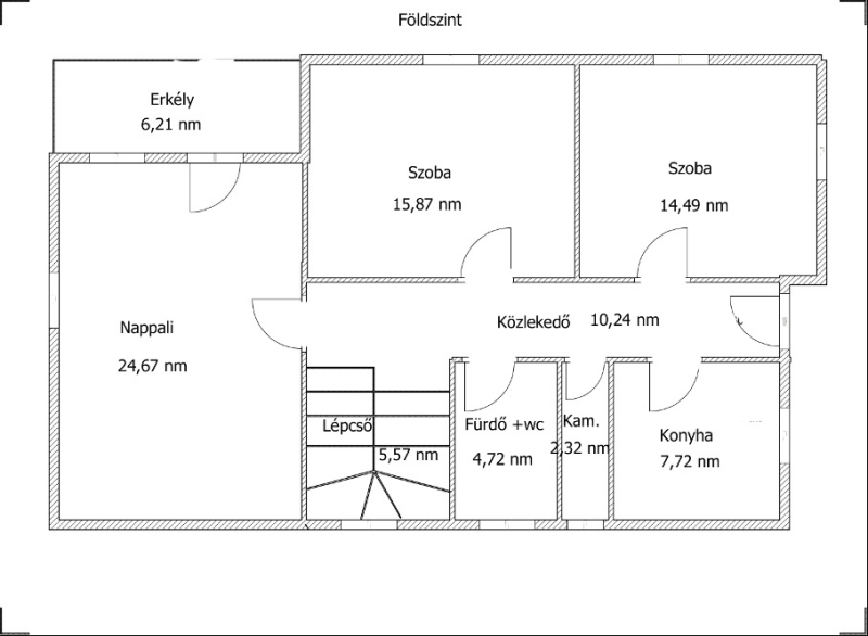 Lakóterület két szinten: 160 nm (földszinten és emeleten szintenként 80 nm)
