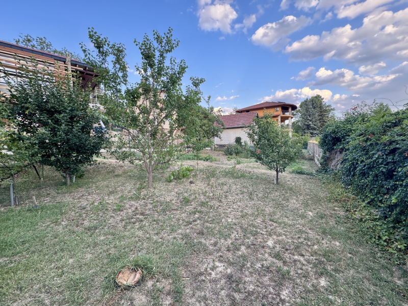 A gondozott, 642 nm-es telek elegendő teret biztosít pihenésre, kertészkedésre, vagy akár gyerekjátszótér kialakítására is.
