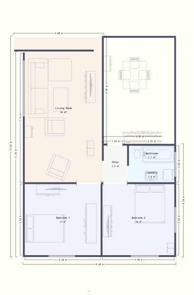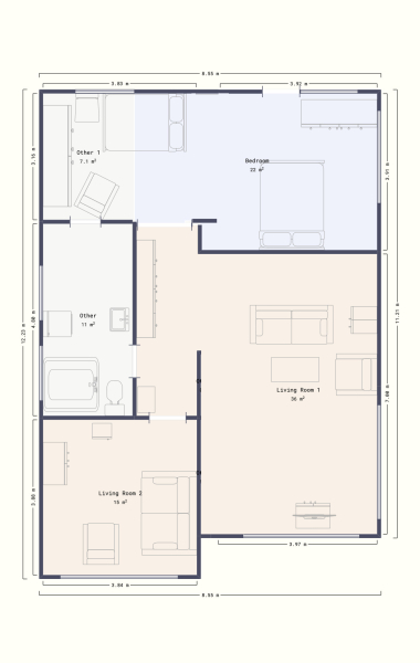 Négy hálószobával, kettő nappalival, kettő fürdővel, illetve konyhával rendelkezik.