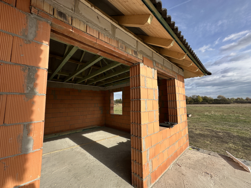 ✔ Falazat: Porotherm P30N+F tégla, betonkoszorúval és fa födémszerkezettel