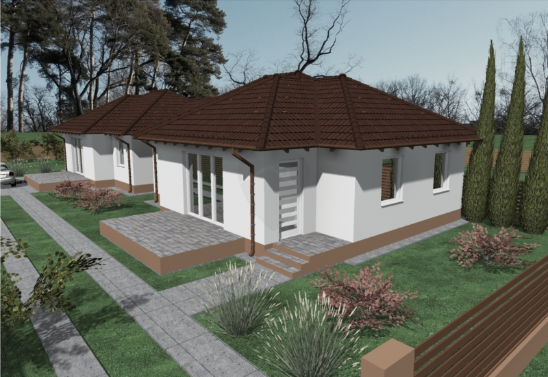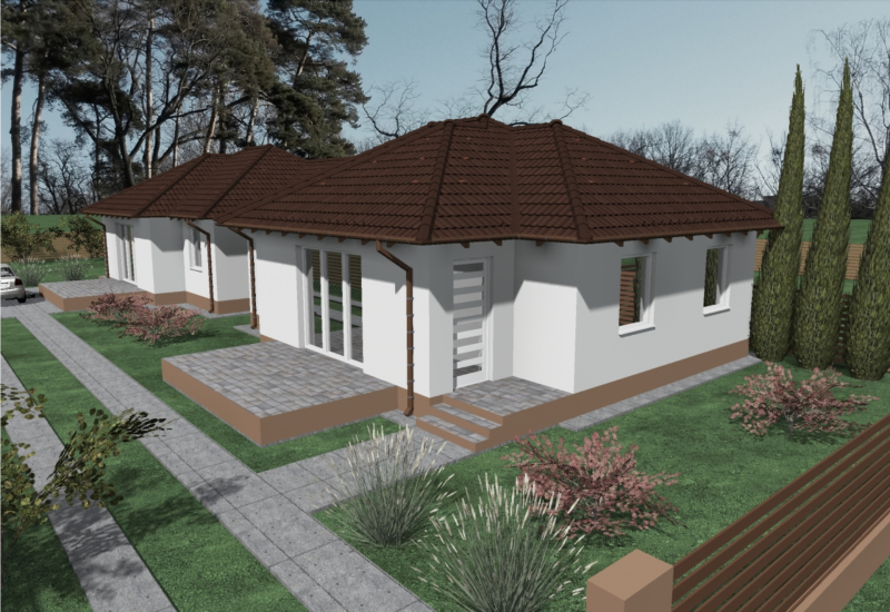 Eladó Jászberény kedvelt részén, a Bársony utcában egy modern kialakítású, egyszintes, új építésű ikerház mindkét lakása, külön-külön vagy akár együtt is!