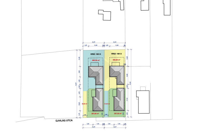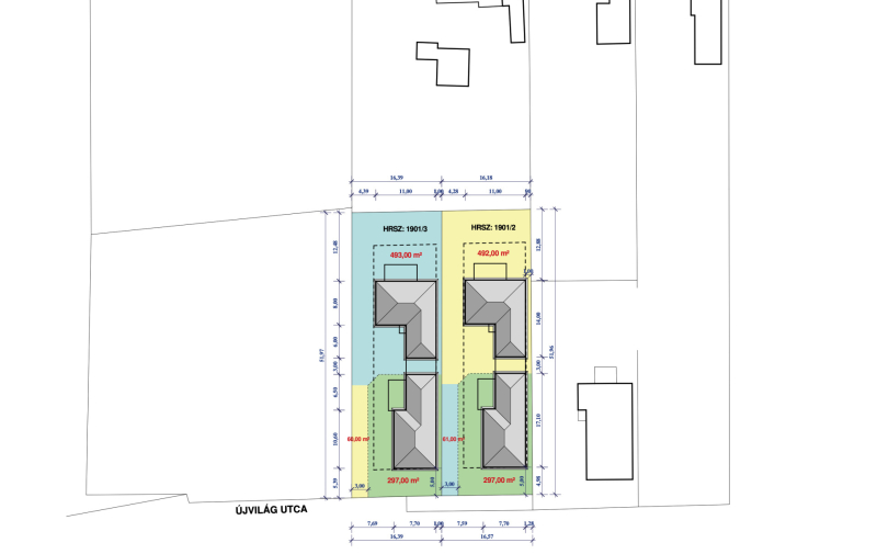Kókán eladó 4db újépítésű ikerház külön kerített 530 m2 telkeken az Újvilág utcában!