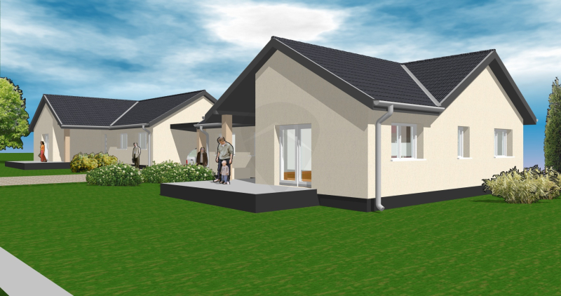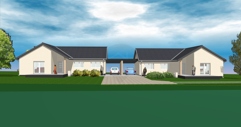 Ikerházak fedett gépkocsi beállókon keresztül csatlakoznak egymáshoz!
