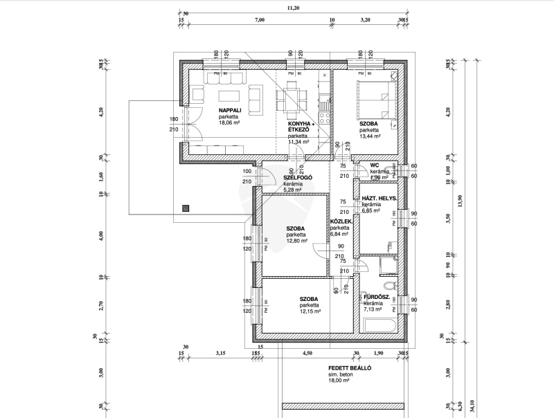 Jól átgondolt, világos, tágas terek jellemzik, 3 hálószoba + amerikai konyhás nappali, WC, fürdőszoba, háztartási helyiség található az ingatlanban.