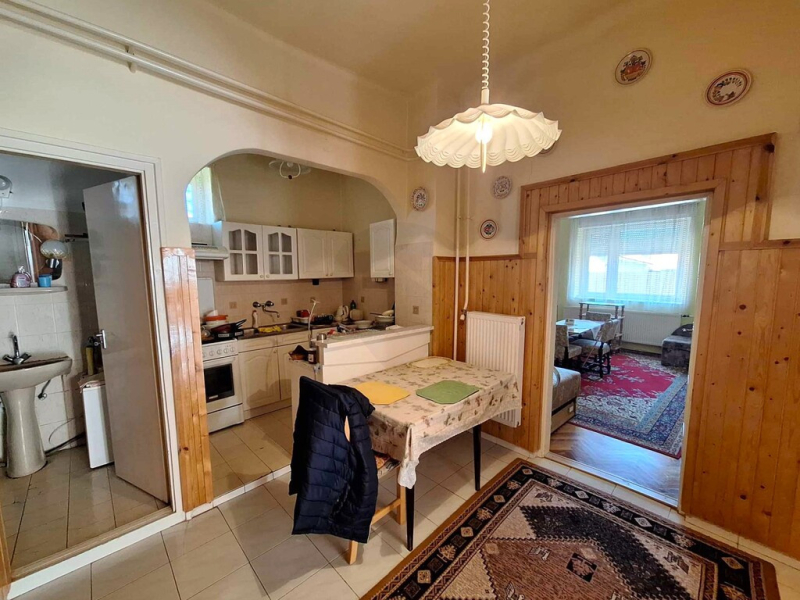 A ház statikailag és szerkezetileg kitűnő állapotban van, tetőszerkezete és héjazata kifogástalan. A közel 150 m²-es lakótér elosztása praktikus: a földszinten két utcafronti szoba, egy tágas előtér, étkezős konyha kamrával, valamint a hátsó részen külön bejáratú szoba és fürdőszoba található. A száraz, két helyiségből álló pince további tárolási lehetőséget biztosít.