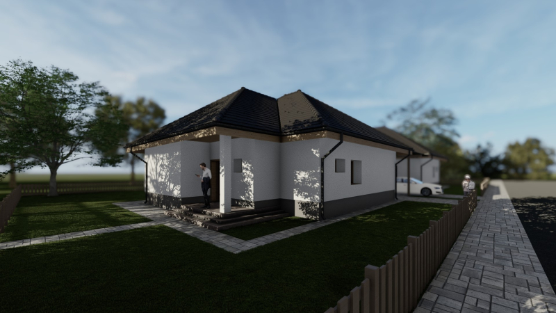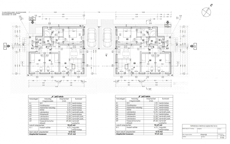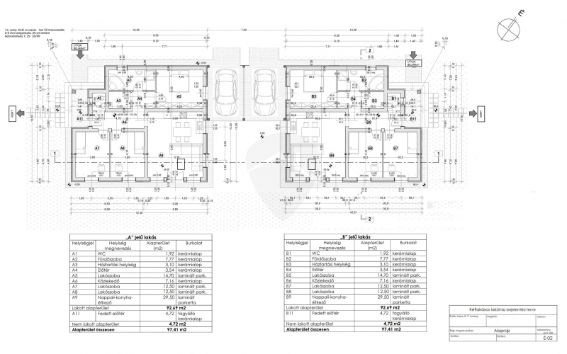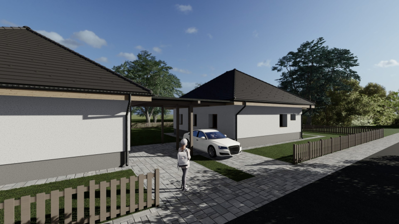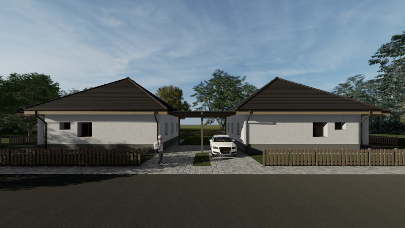 Az ingatlanok közvetlenül NEM érintkeznek, csak a fedett parkoló köti össze az ingatlanokat!