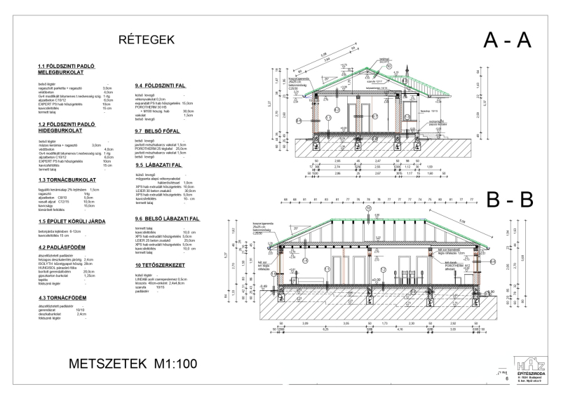A homlokzat 15 cm EPS, a padló 10 cm Austrotherm AT-N100-as, míg a vízszintes födém 25 cm ásványgyapot hőszigetelést kap.