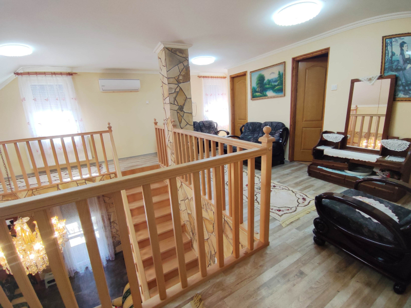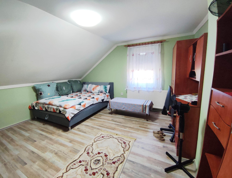 Elosztás: Nappali + 4 hálószoba, tágas gépesített konyha-étkező, 2 fürdőszoba, 2 külön WC