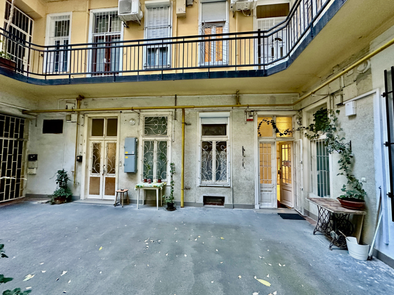 Budapest belvárosában, a VII. kerület egyik legkedveltebb részén kínálunk eladásra egy 85 m²-es, földszinti (utcaszint felett kb. 1,5 m-rel elhelyezkedő), szép állapotú lakást egy rendezett belső udvarú társasházban.