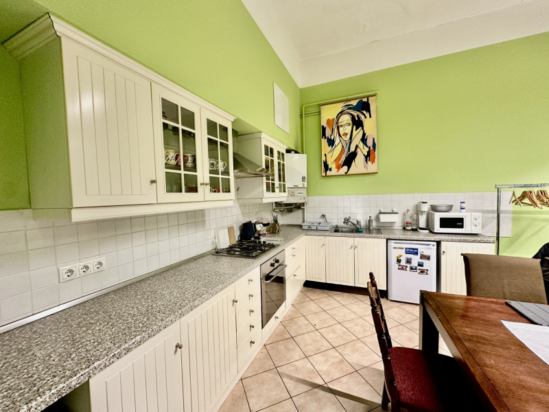 A nagy belmagasság lehetőséget ad galéria kialakítására, vagy akár több kisebb lakásra történő megosztásra is – befektetők számára különösen vonzó lehetőség.