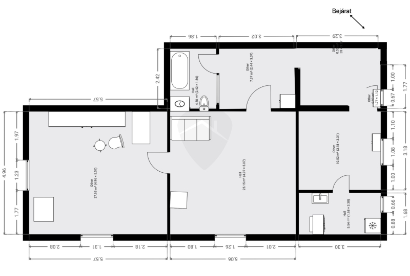 Fűtését jelenleg gáz konvektor biztosítja, a melegvízről villanybojler gondoskodik.