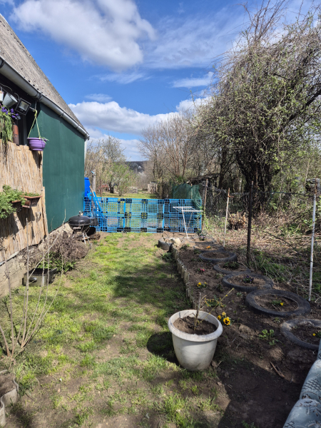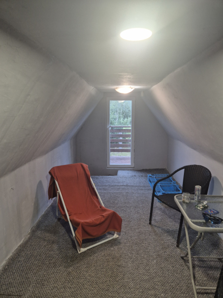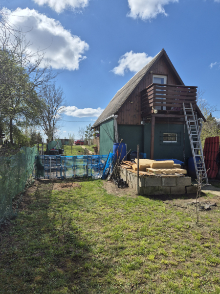A telken található egy kb. 30 m²-es, kétszintes könnyűszerkezetes ház, amely tökéletes menedék hétvégi pihenésre, vagy akár állandó lakhatásra minimális átalakítással.