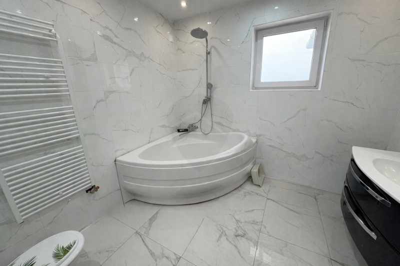 • kényelmes, sarokkádas fürdőszoba WC-vel