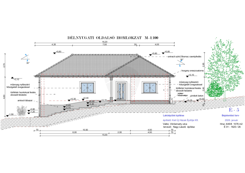 -Tetőfedés: antracit színű betoncserép